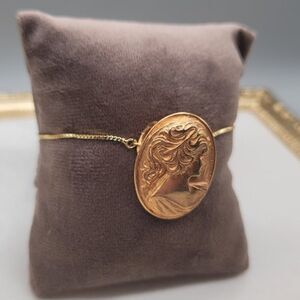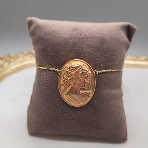 Beautiful gold tone bracelet with a beautiful cameo charm, adjustable closure