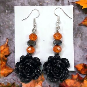 Indulge in the charm of these black rose acrylic earrings embellished with orange and black Chinese crystal beads. Hand-crafted and designed by me, these earrings showcase the perfect blend of style and artistry. The lightweight acrylic material makes them effortless to wear, while the vibrant crystal beads add a touch of glamour. Add a pop of color and charm to your wardrobe and express your unique personality with these eye-catching, handmade earrings.