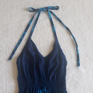 UNBRANDED Halter Neck Tie Dye Summer/Swim Cover Blue Dress SZ S