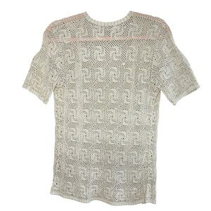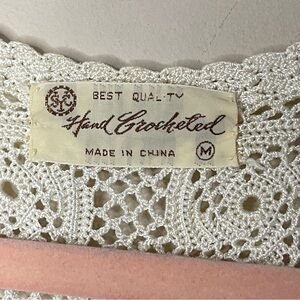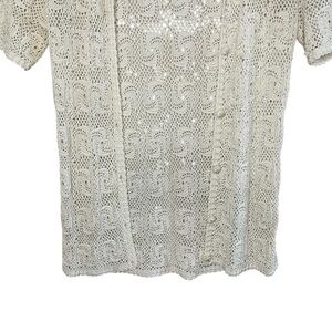 • Beige/Cream hand-knitted short-sleeve crochet cardigan.