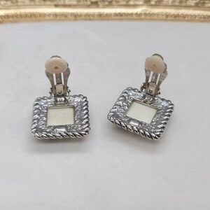 Unbranded silver-tone clip-on earrings, black and white pattern on center stone.