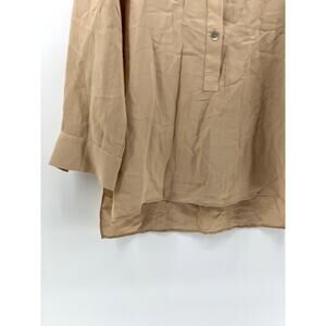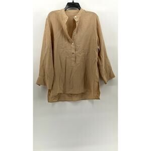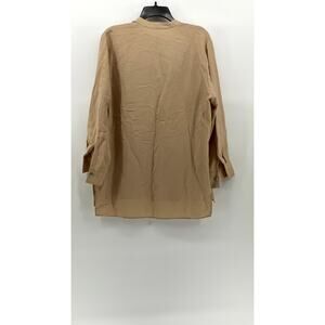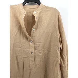 UNBRANDED Women's Beige Mandarin Collar Long Sleeve Side-Slit Tunic Top SZ L
