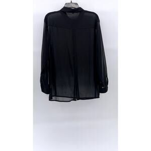UNBRANDED Women's Black Sheer Button-Up Long Sleeve Top SZ S