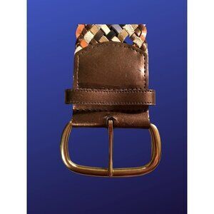 UNBRANDED Woven Leather Belt, WIDE, Blue/Copper/Beige/Brown, Pre-owned
