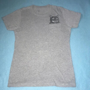 UNBRANDED (faded logo) cat in pocket tee heather gray short sleeve size M