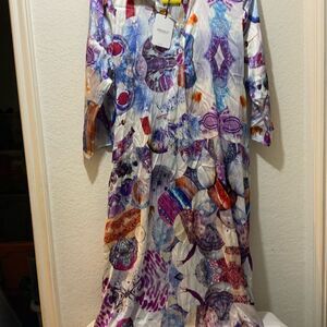 UNBREAK.IT Silk dress MARY MICROSCOPY with 3/4 sleeves stand up collar D8