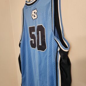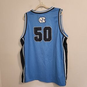 Featuring the iconic Carolina blue, this jersey proudly displays number 50, representing legendary UNC player Tyler Hansbrough.