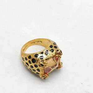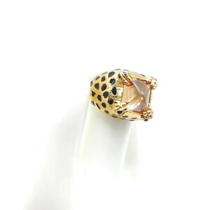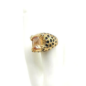 UNCAS Gold Vermeil Over Silver Black Enamel Spotted Leopard Peach Cab Ring Sze 7