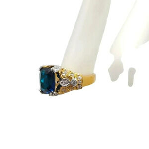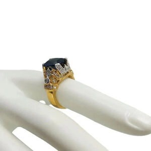 UNCAS Gold Vermeil Over Sterling Blue Clear Rhinestone Filigree Ring Size 7