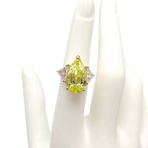 UNCAS Gold Vermeil Over Sterling Large Pear Cut Yellow Rhinestone Ring Size 5