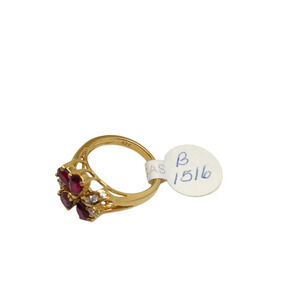 UNCAS Gold Vermeil Over Sterling Red Ruby Clear Rhinestone Flower Ring Size 6.5