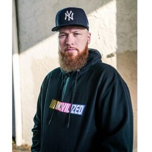 UNCIVILIZED "DAYTONA 500" CHAMPION BLACK HOODIE SIZE L LIKE NEW
