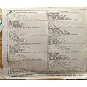Step back into a world where prehistoric creatures roam once again. This charming vintage sewing pattern from McCall's, dated 1983, offers a delightful adventure in crafting. Create your own herd of soft, cuddly dinosaurs, each with its own unique charm. Ideal for those who appreciate nostalgic craft projects and enjoy sewing.
