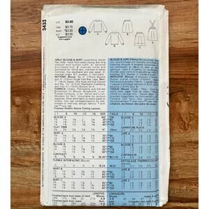UNCUT Vintage 1980s Butterick 3433 Sewing Pattern Size XXS - XS Top Skirt