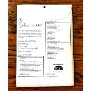 Tags: sunrise industries, daisymae dolls, cloth doll, cloth doll pattern, factory sealed, sailor doll outfit, sailor clothes, sailor hat, yarn, boy doll, boy cloth doll, girl cloth doll, girl doll, vintage doll, vintage baby doll, 80s doll, 1980s doll, vintage girl doll, vintage boy doll, felt, polyester stuffing, embroidery thread, fabric, interfacing, elastic, buttons