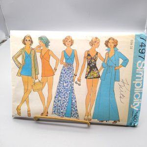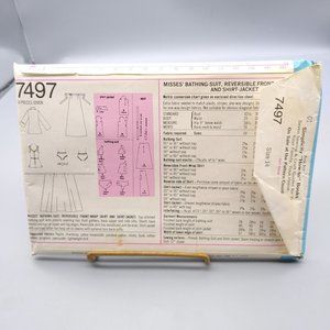 UNCUT Vintage Sewing PATTERN Simplicity 7497, Misses 1976 Bathing Suit Reversible Front Wrap Skirt and Shirt Jacket, Size 14