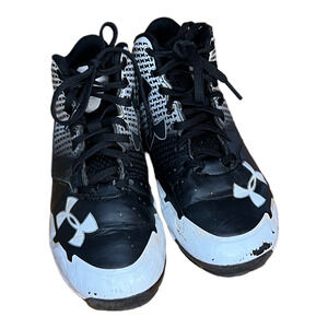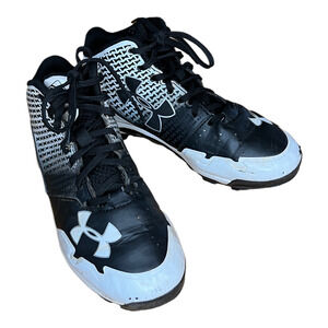 UNDER ARMOUR 1274407-011 Baseball Softball High Top Cleats Black White Size 1Y