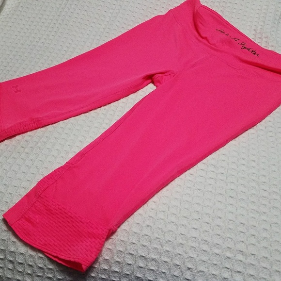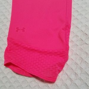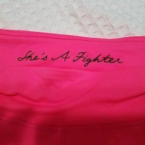 Rare Under Armour, "she's a fighter" breast cancer awareness capris. Hot pink never worn. Heat gear size Large compression fit