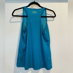 UNDER ARMOUR tank top. Fits youth large and adult medium. Gently worn, in excellent condition. Has a fun blue fabric along with under armour’s logo on the front.