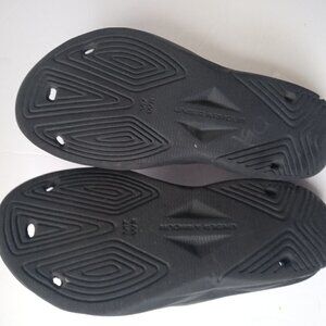UNDER ARMOUR UNISEX LOCKE SLIDE SANDALS. SIZES MEN 7; WOMEN 8. These one piece performance molded slide sandals are quick drying and built to be worn around locker and pool. Engineered to transport water away from feet. May be worn for outside water activities as car washing, garden watering and other around the house chores. Preowned. Very good Condition. Slight wear on one heel. Good bottom treads for safety.