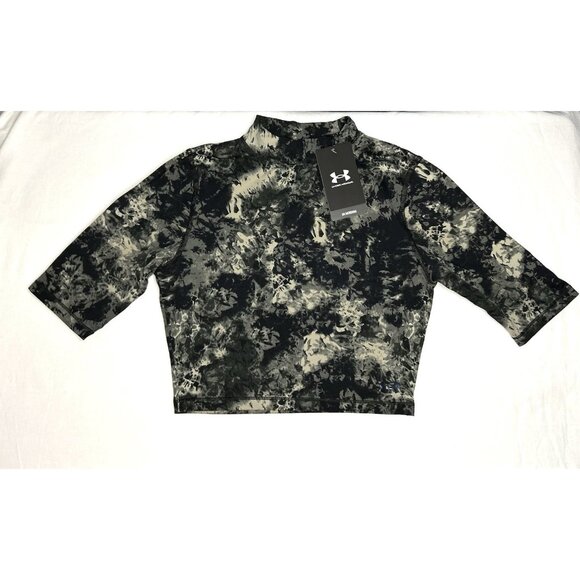 Elevate your workout wardrobe with this stylish Under Armour cropped top. Featuring a meridian print and made from a lightweight, breathable blended fabric, this top is perfect for any physical activity, from running and jogging to yoga and Pilates. The mock neckline and 3/4 sleeves provide a comfortable fit, while the moisture-wicking and quick-dry features keep you feeling fresh and dry throughout your session. This top is from the spring 2022 collection, originally retailed for $50, and is brand new.