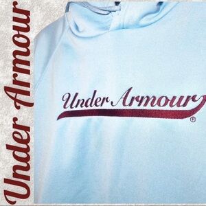 UNDER ARMOUR Fleece Lined Logo Hoodie in Sky Blue & Maroon Red, Size XS