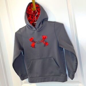 Youth Size Medium UNDER ARMOUR Gray, Orange & Black Camouflage Pullover Hooded Sweatshirt Size Medium