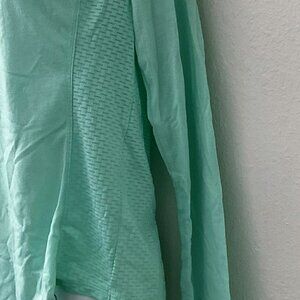 Size tag has been removed. Please see measurements Approximate measurements laid flat: Bust: 19” Sleeve: 27 Length: Front: 22: Back: 23” Middle Top to Bottom 25"