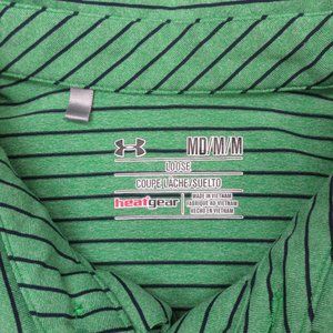 UNDER ARMOUR HEATGEAR LOOSE FIT POLO SHIRT POLY/SPANDEX GREEN & NAVY MEDIUM, M
