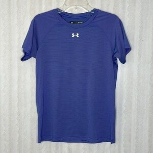 ❤️ 🆕 UNDER ARMOUR Heat Gear Womens Blue/White Striped SS Tee Shirt Size S