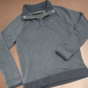 Stylish gray pullover sweater by Under Armour. Features a ribbed collar and cuffs.