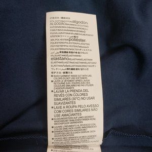 - 57% Cotton, 38% Polyester, 5% Elastane