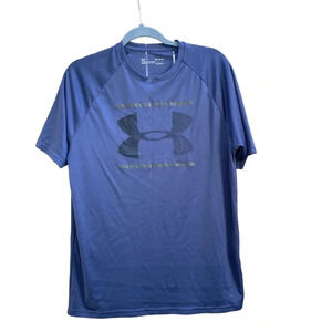Pre owned. Excellent condition. No flaws or signs of wear. Mens size medium. Dark blue tee.