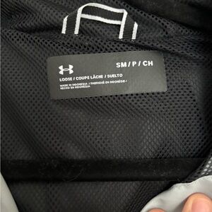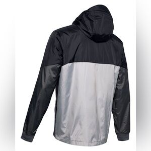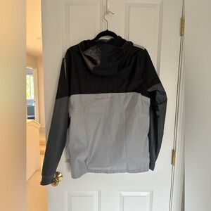 Sleek and versatile windbreaker. Features a stylish black, gray, and white design. Ideal for active wear.