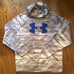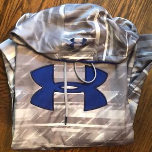UNDER ARMOUR Men's Grey Camouflage Hoodie With Blue Chest Logo Sz Large
