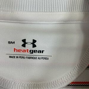 UNDER ARMOUR Men's HeatGear White and Red Stripe Polo Shirt Small #511