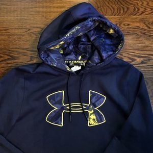 UNDER ARMOUR Men's Navy Blue Hoodie With Yellow & Blue Chest Logo