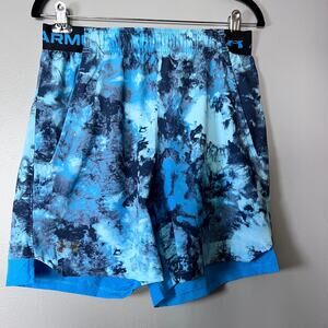UNDER ARMOUR Men’s Shorts Medium Blue Black Tie Dye Athletic Training Gym NWT