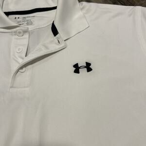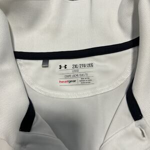 UNDER ARMOUR Polo Golf Shirt Mens 2XL White Loose Fit Heat Gear Black Trim