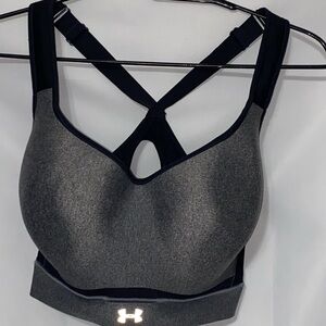 UNDER ARMOUR SPORTS BRA SIZE 36DD ADJUSTABLE CRISS CROSS STAPS BLACK GRAY CLEAN