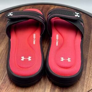 UNDER ARMOUR Sandals Youth Girl Size 10 Black and Pink Hook and Loop Slides