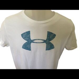 UNDER ARMOUR The Classic Tee White Shirt Blue Logo Women M Medium