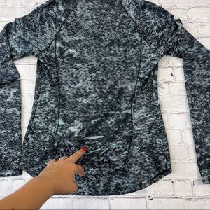 Excellent condition UNDER ARMOUR Woman’s Fly-By Allover Printed Mesh Long Sleeve Top Blue Black. Please note the size/material tag is cut off. Fits like Small.
