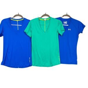UNDER ARMOUR Women Heat Gear Shirt Tee 3 pc LOT Sm Blue Green Workout Athleisure