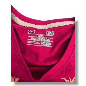 The pink and tan color combination gives a stylish and classic look, perfect for any hunting or sports outfit. The shirt is part of the Under Armour HeatGear product line, which means that it is high-quality and durable. The shirt is suitable for any regular-sized woman and is perfect for any activewear activity.