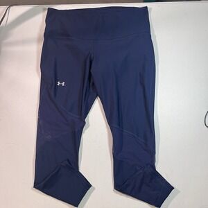 UNDER ARMOUR Women's Project Rock HeatGear Ankle Crop Large Navy Blue Legging