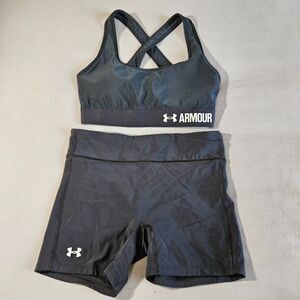 UNDER ARMOUR Workout Sports Bra and Shorts Set Small Black Gym Training Nylon
