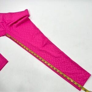 Item is in good used condition with little to no signs of wear. Great activewear, or athleisure aesthetics. Low-rise waist, and a polyester / elastane blend. Bright / hot pink in color, and has a faint abstract pattern. Please see photographs for measurements and details.