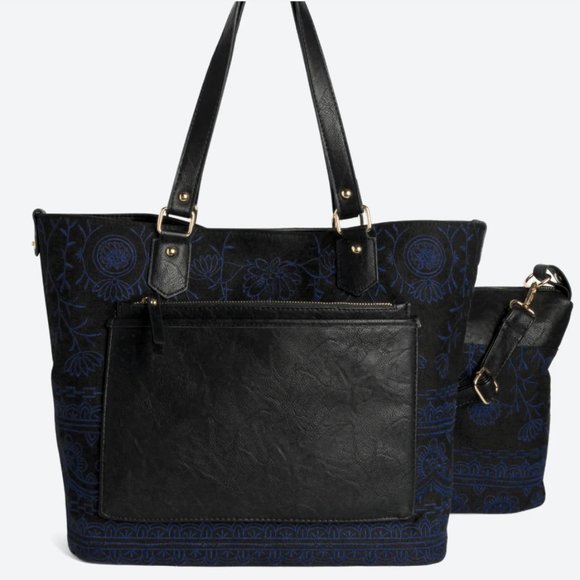 The Under One Sky Sharma Embroidered Four-In-One Tote is a stylish way to carry the essentials. With a detachable crossbody purse, detachable clutch and spacious main compartment, this tote bag has everything you need.