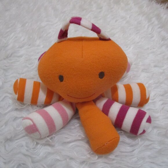 UNDER THE NILE Scraptopus Octopus Organic Cotton Baby Toy Safe Pink white orange